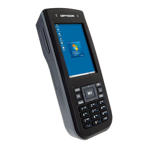 | Description New | A sleek design, highly responsive touchscreen and strong processor make the H-32 a perfect product for advanced tasks and situations that require a multi functional solution. This device holds a 1D laser scanner for smooth and comfortable scanning, features a 1.5 drop resistance and an IP-54 rating; making the scanner perfect for indoor and outdoor activities. There are multiple ways that facilitate real-time data transfer including Bluetooth, Wi-Fi and more. If no connection is possible the scanner stores that data and transfers it later by USB-cable or other communication methods, which adds flexibility to the scanner. The H-32 has a Windows embedded compact operations system and some simple scanning applications can be made available. Extensive service solutions will require an additional application that can be arranged by Opticon, self-programmed or downloaded. |