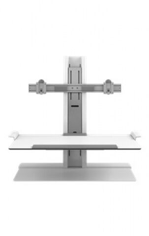 An intuitive solution designed by Humanscale Studio for a desk to be both a sit and stand workstation. With little efforts, you can alternate between which position is comfortable. Simple plug and go makes it easy to setup! Dual series and comes in white.
