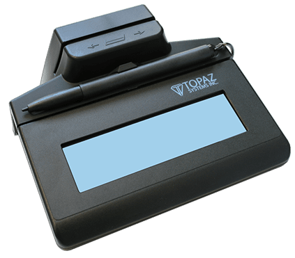Topaz SigLite LCD 1×5 With MSR (TM-LBK460-BSB-R) features a backlit LCD display which allow users to see the screen as they sign and display text and graphics. It comes with a low-cost touchpad, stylus and all of the high-quality biometric capture techniques