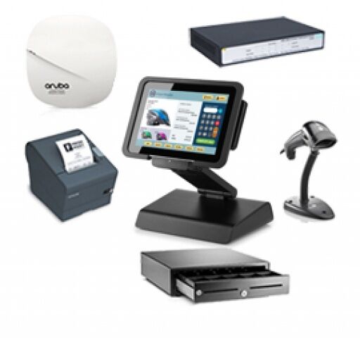 The mobile POS bundle includes: HP Pro X2 612 Tablet, HP Tablet Retail Dock, HP Cash Drawer, HP Thermal Printer, HP Barcode Scanner, HPE Aruba Access Point, HPE OfficeConnect 1420 5G POE+ 32W Switch